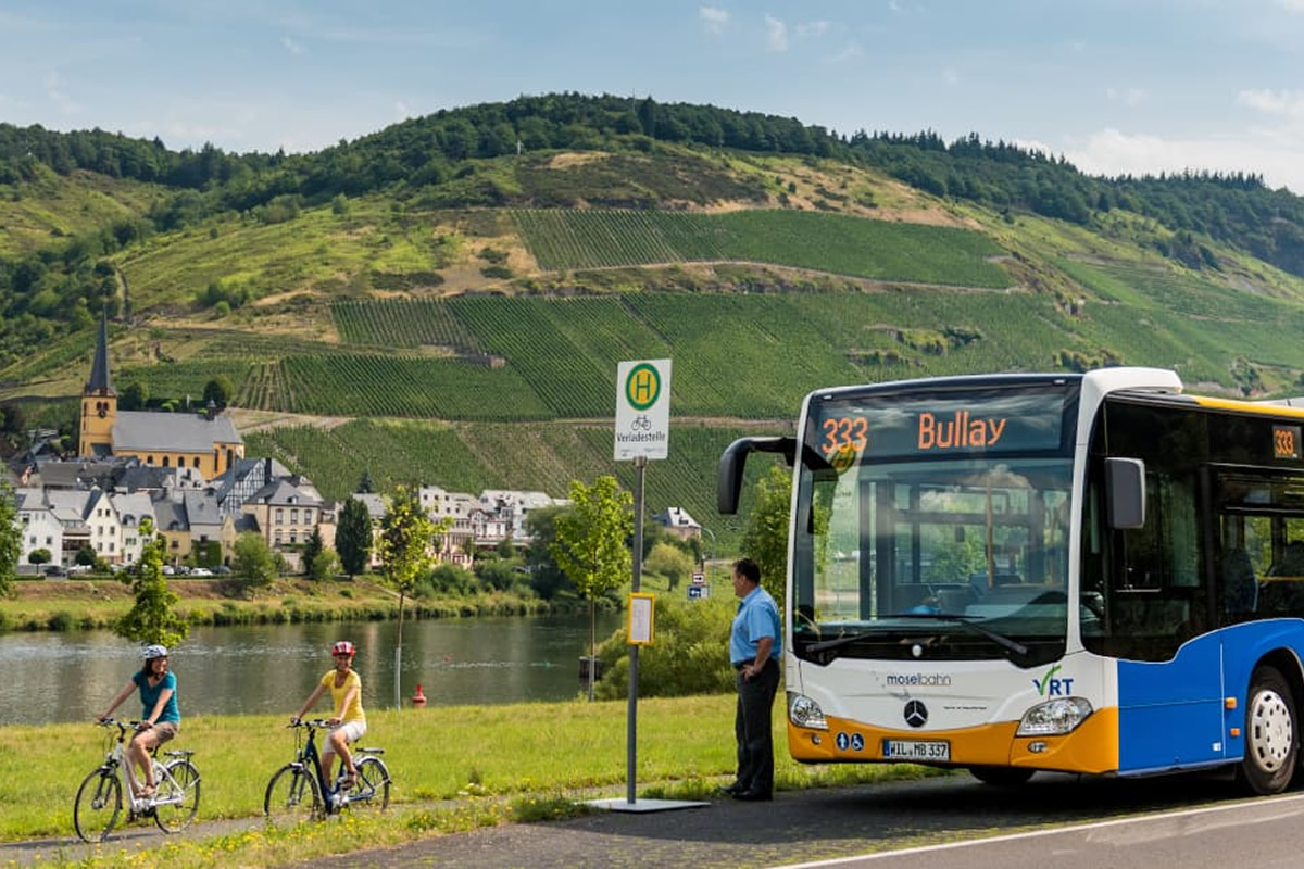 Der Radbus der Moselbahn verkehrt zwischen Traben-Trarbach und Trier. Weitere Informationen und Online-Reservierung unter www.radbusse.de.