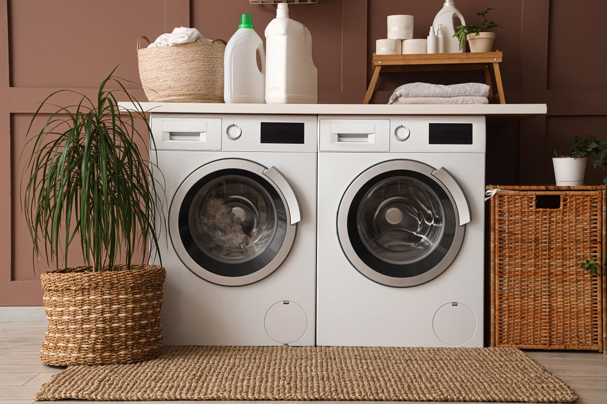 Im Waschraum finden Sie Waschmaschinen, Trockner, ein Bügeleisen und ein Bügelbrett.